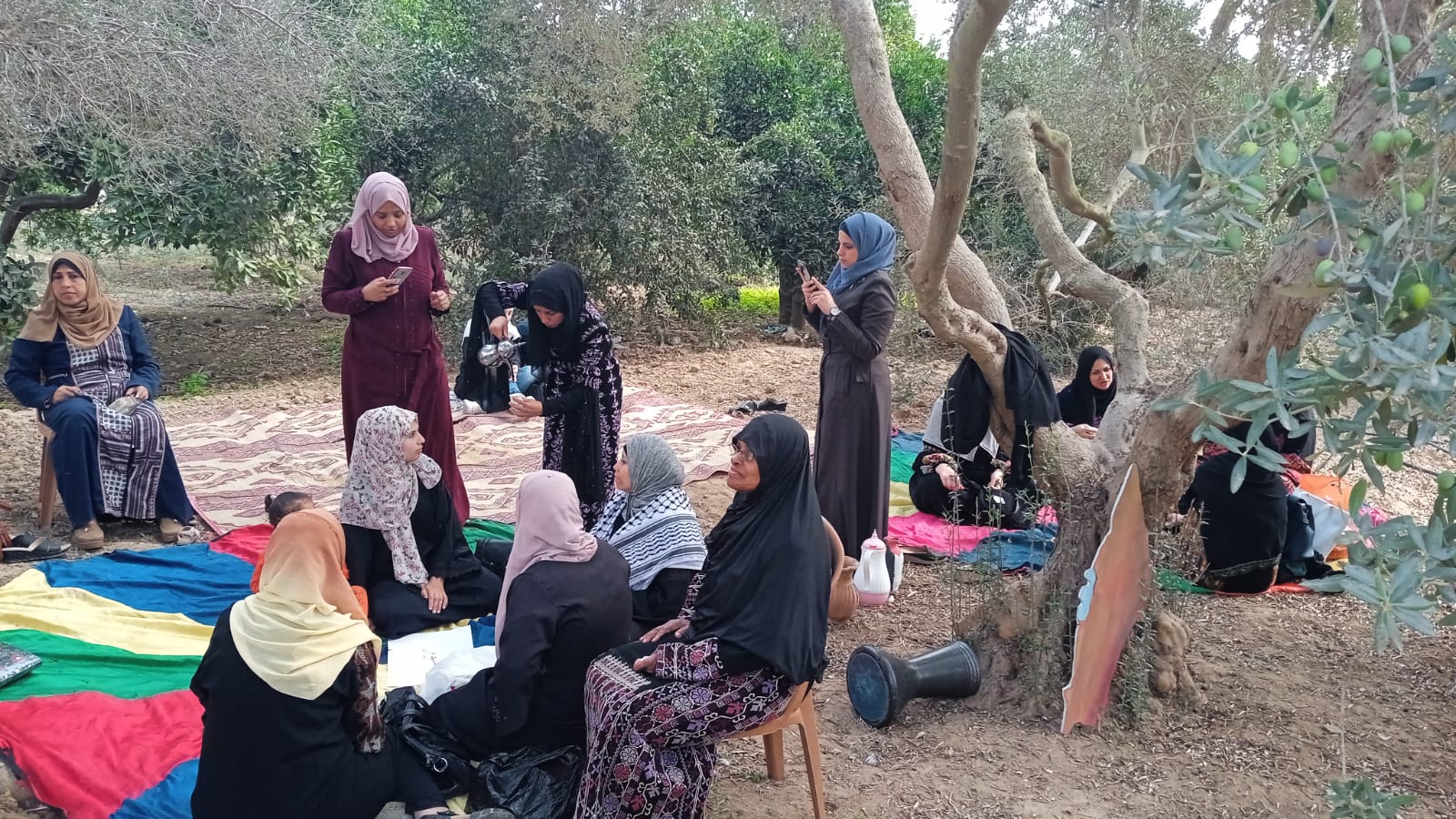 مجلس المرأة في حركة فتح ينظم يوم لقطف الزيتون في المحافظة الوسطى