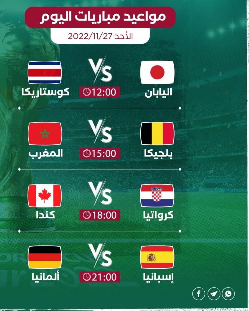مواعيد مباريات اليوم الأحد 27-11 في كأس العالم 2022 والقنوات الناقلة