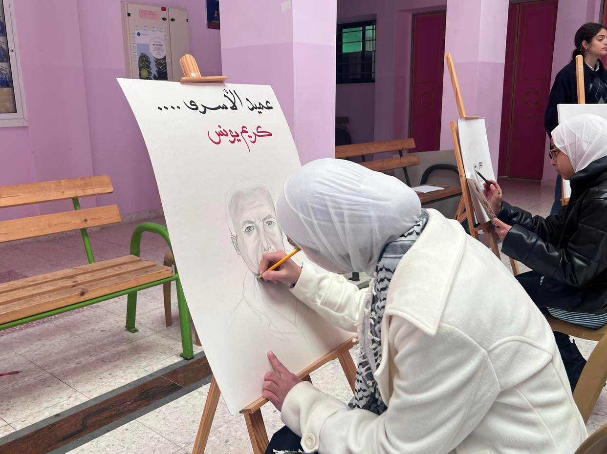 واستمعت الطالبات لمحاضرة قدمها الأسير المحرر لؤي المنسي، حول كريم يونس والحركة الأسيرة وظروف السجن والاعتقال، وفي البهو الخارجي كانت طالبات يرسمن صوراً لوجه وأخرى تعبيرية عن اعتقال الأطفال، وكانت أخرى تعزف على آلة العود وتردد أغاني وطنية.