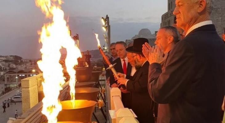 أضاء وزير جيش الاحتلال الإسرائيلي بيني غانتس، مساء يوم الثلاثا، شمعة "حانوكا" عند حائط البراق في القدس .