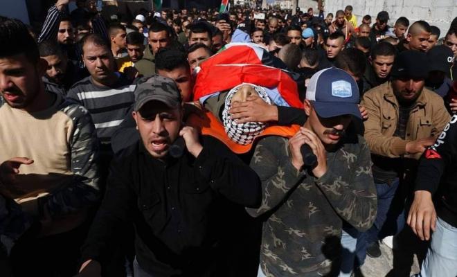 تشييع جثمان الشهيد محمد عمرو في بلدة حلحول بمحافظة الخليل