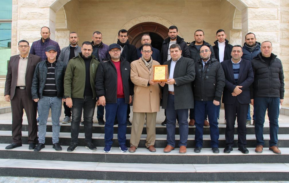 وفي نهاية اللقاء قام وفد الدائرة بتقديم درع التهنئة بمناسبة الانطلاقة ٥٨ لحركة فتح.