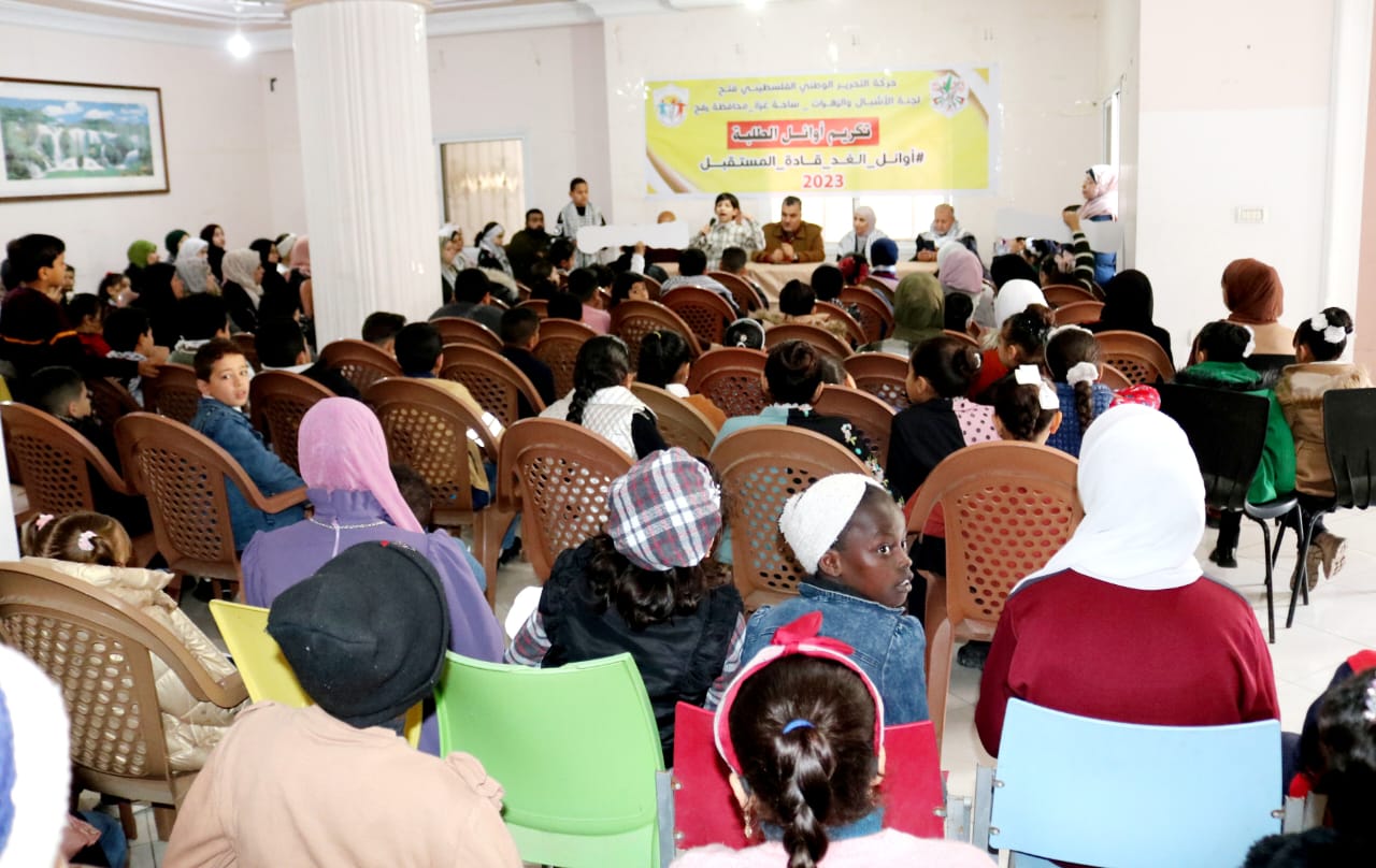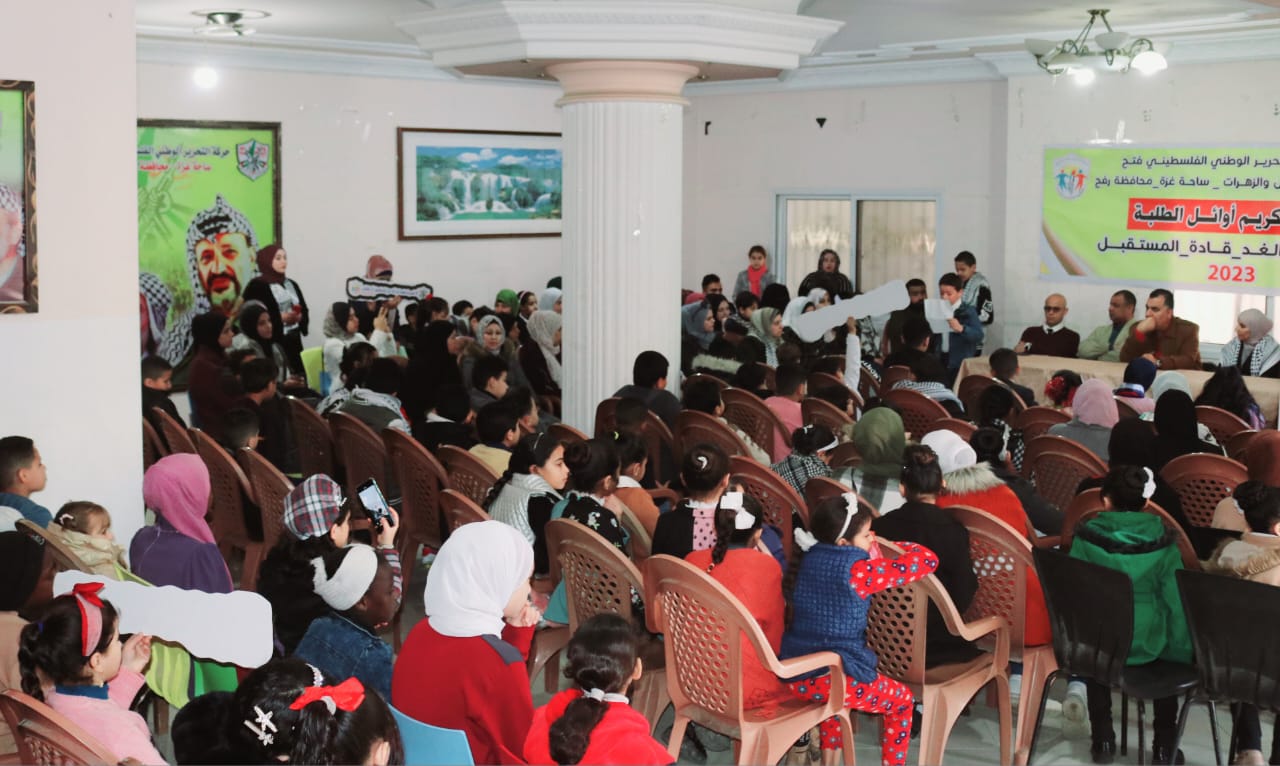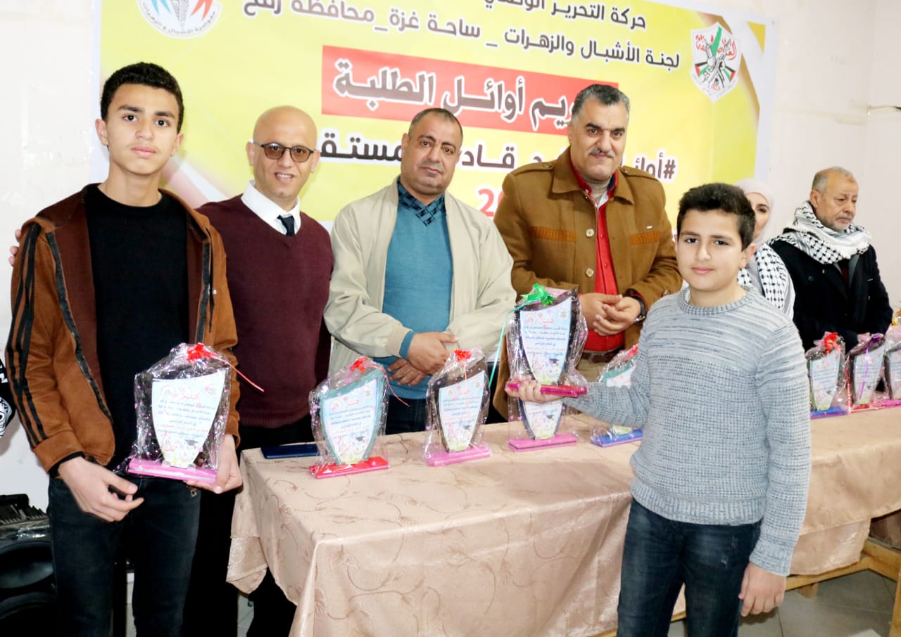 كرمت لجنة الأشبال والزهرات بحركة فتح في محافظة رفح، صباح اليوم السبت، الطلبة المتفوقين للفصل الدراسي الأول في المدارس الحكومية والوكالة والخاصة بالمحافظة.
