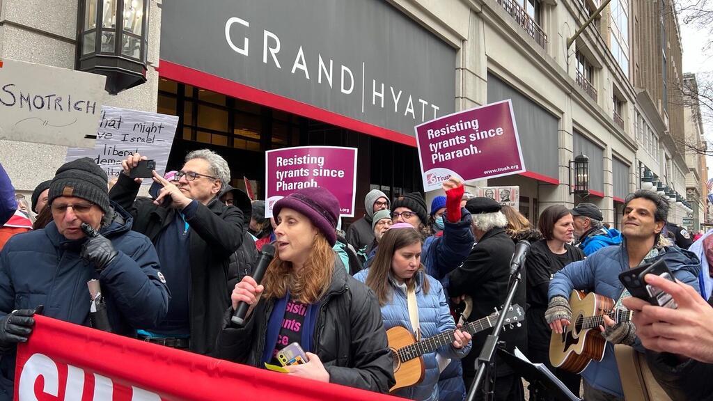 تظاهر مئات المتظاهرين من مختلف شرائح الجالية اليهودية الأميركية والإسرائيلية ضد وزير المالية الإسرائيلي بتسلئيل سموتريتش اليميني المتطرف الذي طالب قبل أقل من أسبوعين بمحو بلدة حوارة الفلسطينية من الوجود، وذلك أمام "فندق جراند حياة" في العاصمة الأميركية واشنطن، حيث كان يشارك في جفل "سندات إسرائيل" التي تجمع سنويا مئات الملايين من الدولارات لدعم الاحتلال الإسرائيلي.