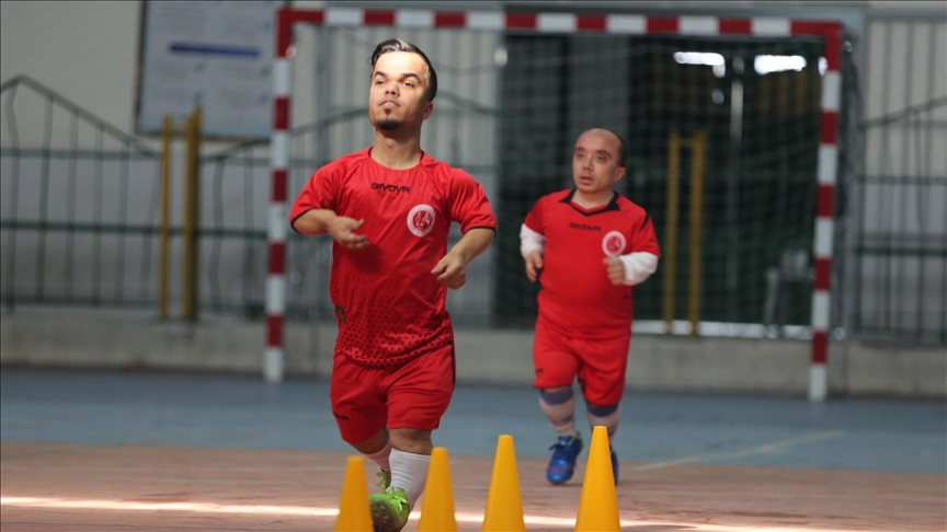 بروح عالية وأجواء حماسية، يُجري 5 من لاعبي كرة القدم من فئة قصار القامة، تدريبات مُكثّفة داخل صالة رياضية مُغلقة، لتكوين نواة أول فريق من نوعه في قطاع غزة، استعدادا للمشاركة في بطولة ستعقد خارج البلاد.