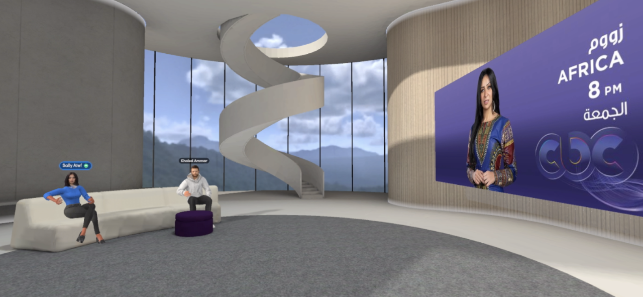 وداخل هذا الاستوديو نستطيع أن نعرض مواد مصورة، فضلًا عن استضافة أي شخص من أي مكان في العالم وعمل بث مباشر للحلقات أو تسجيلها عن طريق نظارة VR وعرضها على شكل فيديو مصور على منصات سواء داخل أو خارج الميتافيرس.