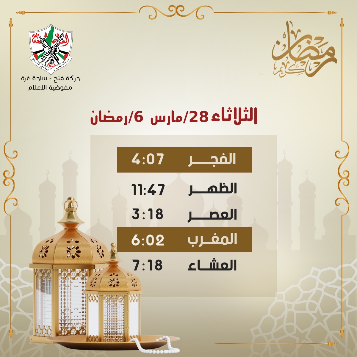 صورة: إمساكية يوم الثلاثاء .. السادس من رمضان