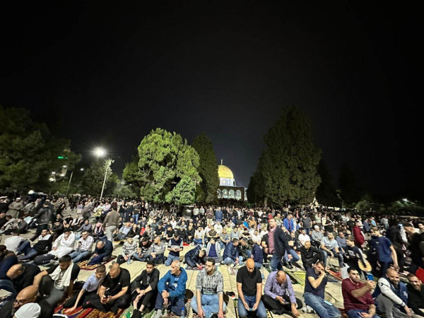 أدى أكثر من 80 ألف فلسطيني صلاة العشاء والتراويح في المسجد الأقصى، مساء اليوم الأربعاء، في ليلة التاسع والعشرين من ليالي شهر رمضان المبارك.