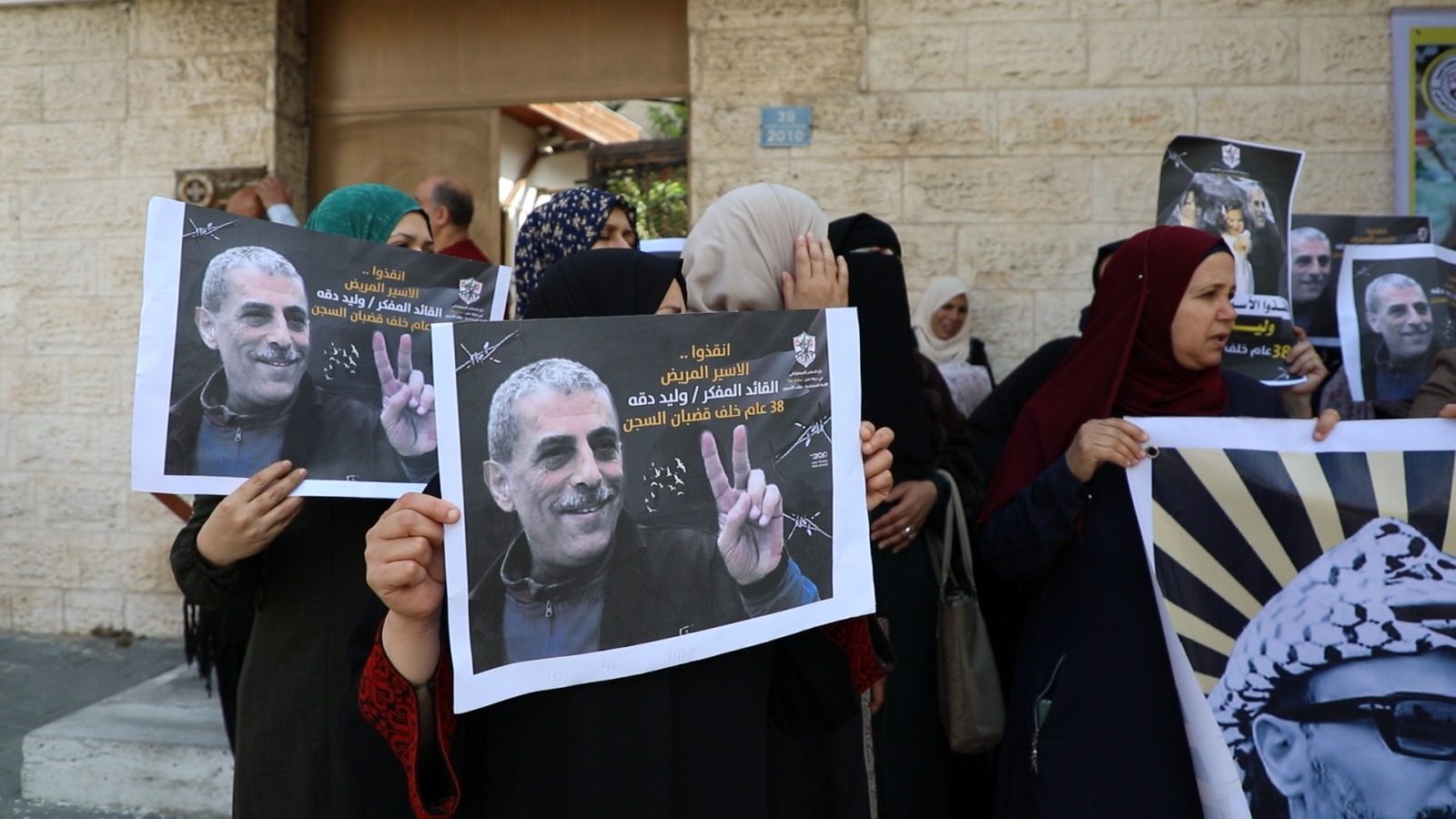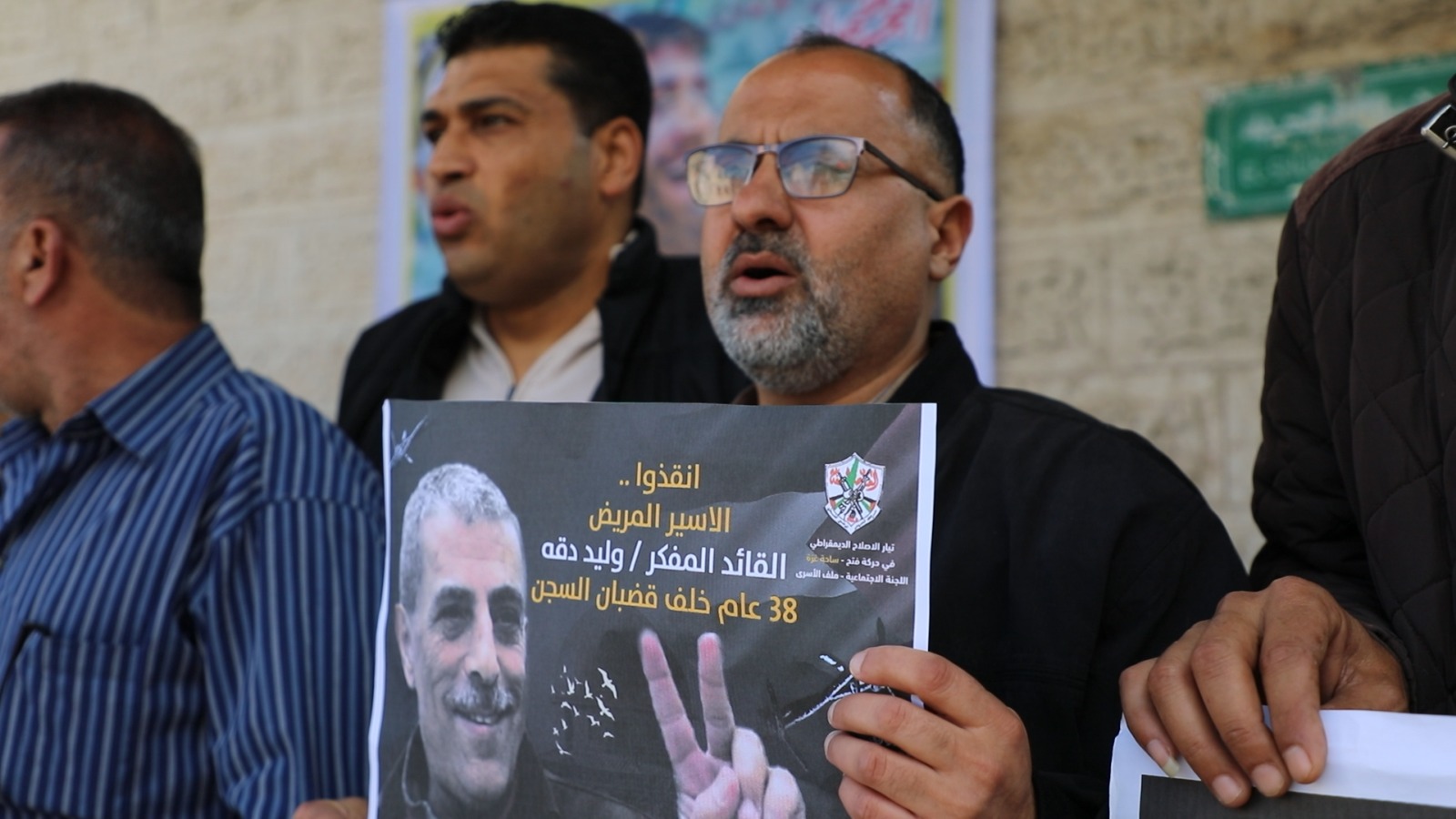 وكانت وقفة اليوم لدعم الأسير المريض وليد دقة وتزامنا مع إطلاق حملة الإسناد للأسير دقه، التي دعا إليها اليوم الأسرى في سجن نفحة.