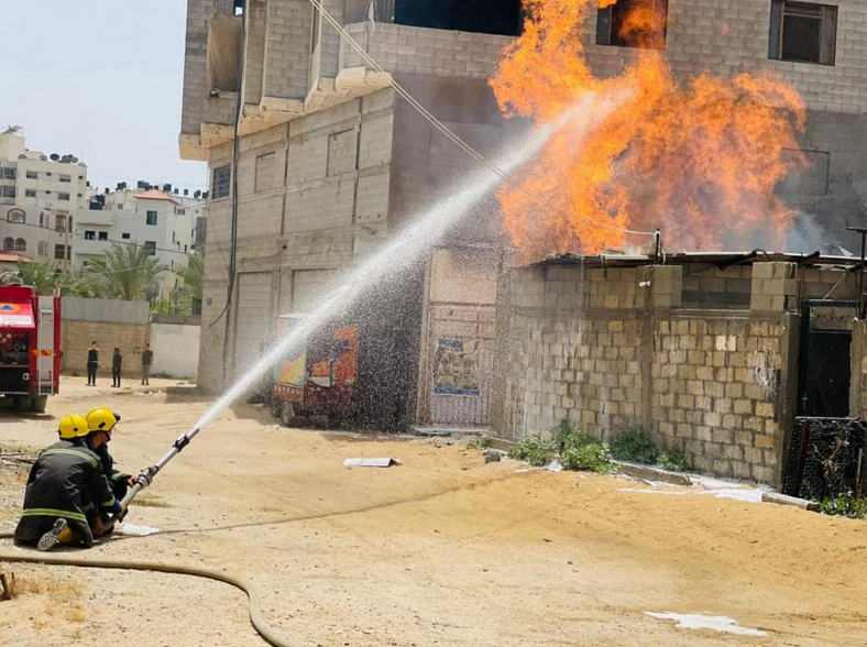 إصابة اثنين من الدفاع المدني خلال السيطرة على حريق وسط قطاع غزة
