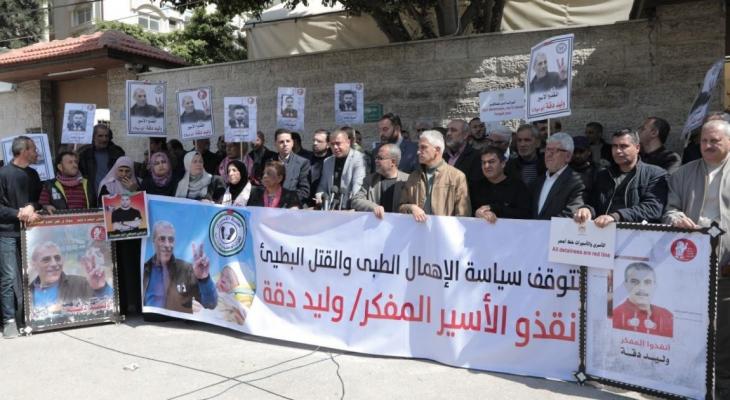 وردّدوا هتافات إسنادًا للأسير دقة وحملوا سلطات الاحتلال "الإسرائيلي" كامل المسؤولية عن حياته، في ظل عدم تلقيه العلاجات الطبية اللازمة.