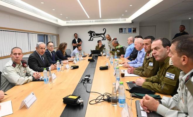 وكان مكتب نتنياهو نشر: "يجري رئيس الوزراء بنيامين نتنياهو تقييما للوضع الأمني في القيادة الوسطى، بمشاركة وزير الدفاع ووزير الشؤون الاستراتيجية ورئيس الشاباك ورئيس الأركان ورئيس شعبة الاستخبارات ورئيس شعبة العمليات وقائد القيادة الوسطى ومنسق عمليات الحكومة".