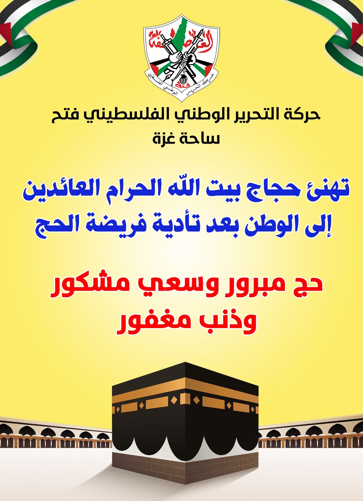 حركة فتح بساحة غزة تهنىء الحجاج بأداء فريضة الحج وعودتهم سالمين إلى أرض الوطن