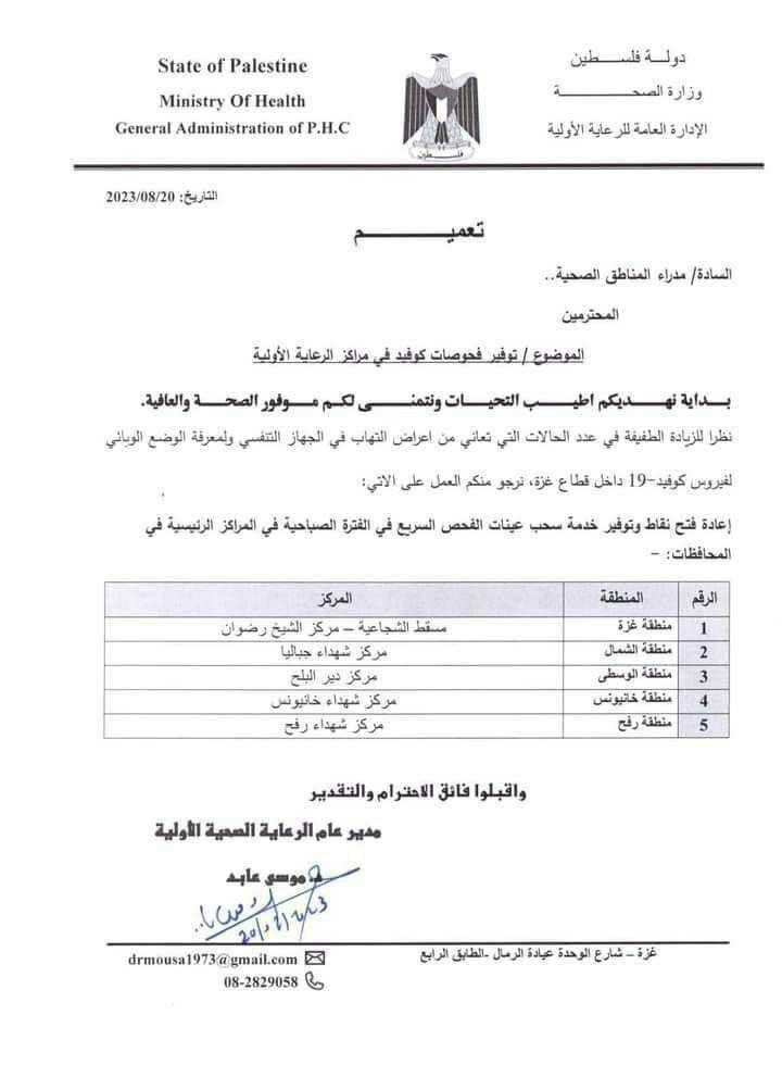 وأوضحت أنّها تُعيد فتح نقاط وتوفير خدمة سحب عينات الفحص السريع في الفترة الصباحية في المراكز الرئيسية في المحافظات.