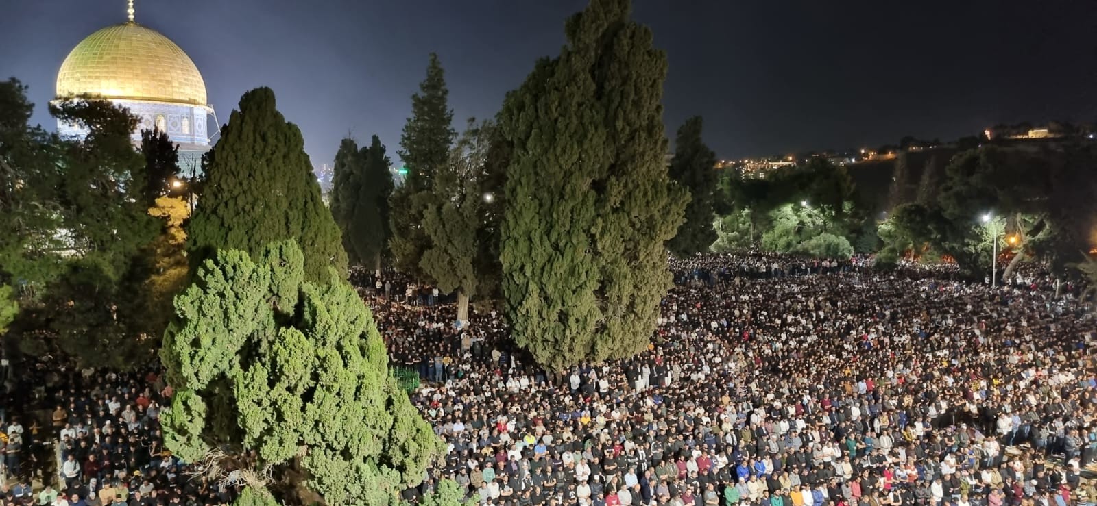 آلاف المصلين يؤدون صلاة الفجر في باحات المسجد الأقصى المبارك
