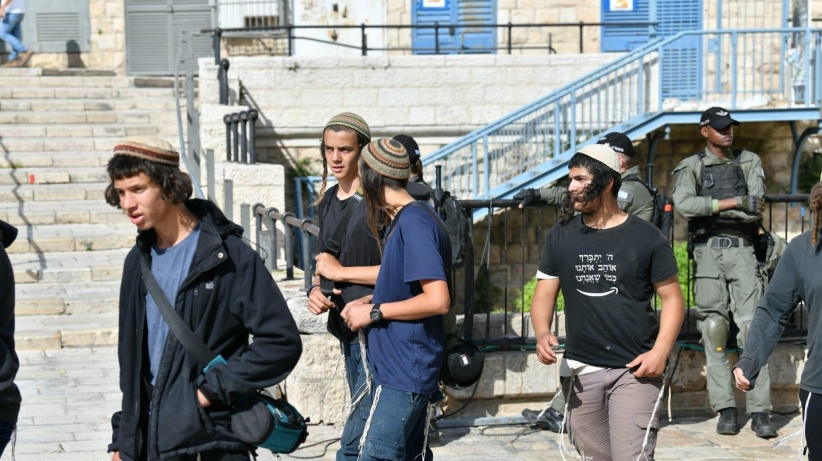 رفع مستوطنون، اليوم السبت، أعلامًا إسرائيلية فوق أراضٍ فلسطينية في قرية أرطاس جنوب بيت لحم.