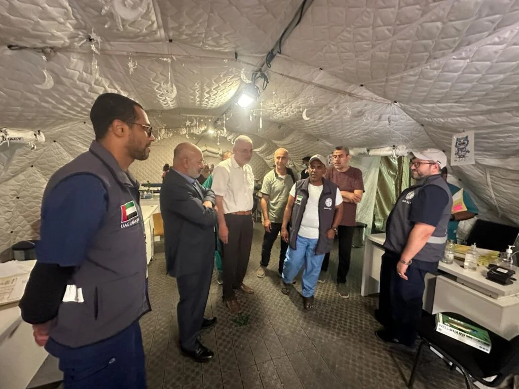 زار وفد من مجمع ناصر الطبي، المستشفى الميداني الإماراتي في مدينة رفح جنوب قطاع غزة، في جولة ميداني اطلع من خلالها على الخدمات الطبية المقدمة للنازحين، والأجهزة الطبية والأقسام والمعدات الحديثة وغرف العناية المركزة والعلاج الطبيعي التي تم تجهيزها بدعم من دولة الإمارات العربية المتحدة لدعم القطاع الصحي، وتحسين جودة الخدمات الطبية المقدمة للأسر الفلسطينية.