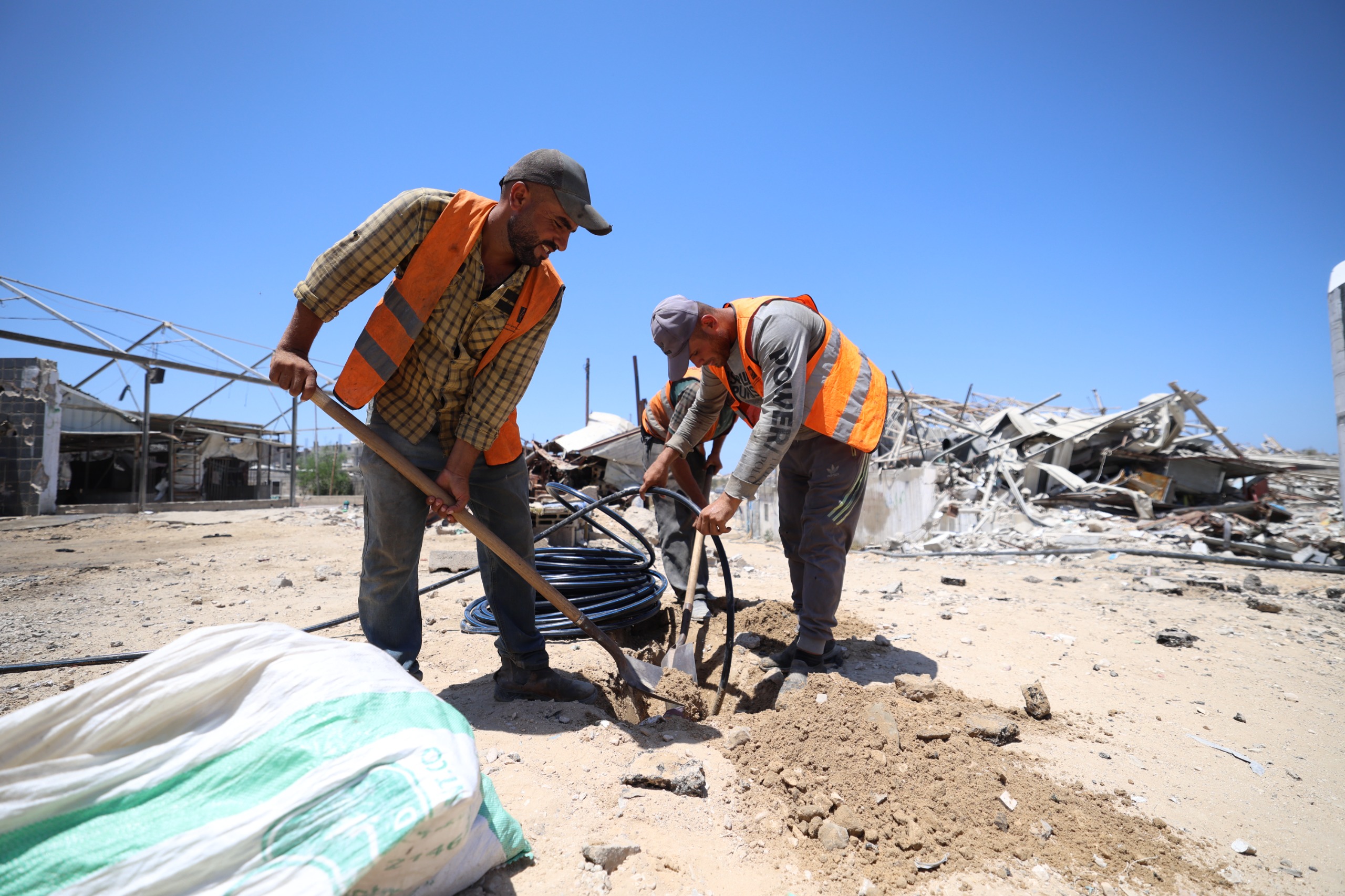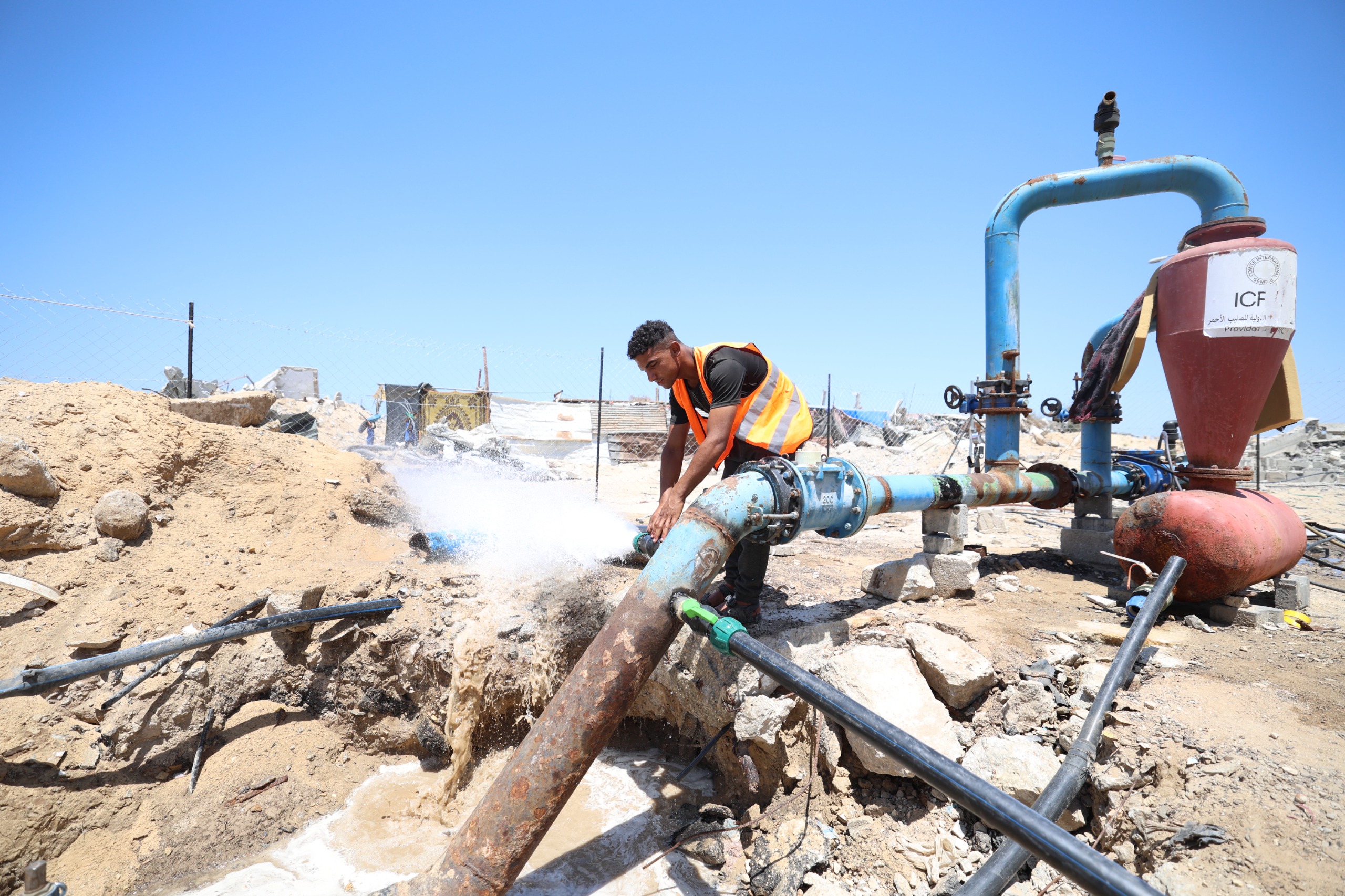 وتعمل شركة مختصة في إصلاح الخطوط المُتضررة بعد توقيع مذكرة تفاهم مع بلدية خانيونس ضمن جهود دولة الإمارات لإيجاد الحلول الإنسانية العاجلة، والتمويل لإعادة تشغيل آبار المياه وخزانات المياه في المدينة بعد تضرر عدد كبير منها، حيث بلغت نسبة أضرار شبكات المياه الرئيسية حوالي 70%، بالإضافة لتدمير 25 بئرا بشكل كلي و12 بئرا بشكل جزئي، والذي تسبب في تفاقم أزمة المياه في المدينة خلال الأشهر الماضية وعدم قدرة النازحين على الحصول عليها.