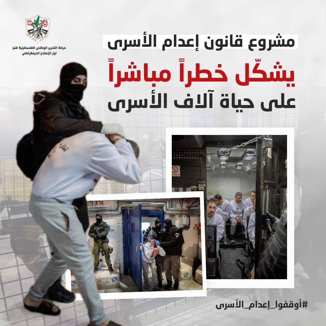 بالصور: تيار الإصلاح الديمقراطي يطلق حملة إلكترونية رفضًا لمشروع قانون إعدام الأسرى الفلسطينيين في سجون الاحتلال