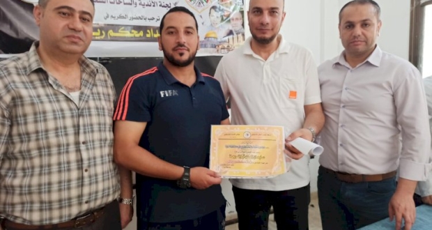 وفي ختام الدورة تم توزيع شهادات تكريمية إلى المشاركين في الدورة وتكريم مدرب الدورة الرياضي سليمان ابو شريعة تقديراً لجهوده المبذولة في إعطاء الخبرة الرياضية للمتدربين .