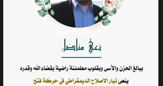 نعى تيار الاصلاح الديمقراطي في حركة فتح محافظة غزة قاطع التفاح والدرج؛ ببالغ اﻷسى والحزن وبقلوب مؤمنه بقضاء الله وقدره د. إياد كرم عضو ساحة غزة؛ الذي وافته المنيه مساء يوم الخميس الموافق 13/08/2020 بعد صراع طويل مع المرض عن عمر يناهز 44 عاما قضاها عاملاً لدينه ووطنه وقضيته في كل مراحل حياته وفِي كل المحافل والمجالات.