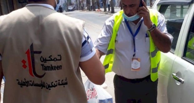 وزعت شبكة تمكين المؤسسات الاهلية ، اليوم الاثنين، طرود مشروبات على العاملين في المخيمات من عمال البلديات وموظفين شركة الكهرباء في ظل جائحة كورونا والتي تجتاح قطاع غزة من اكثر من اسبوع.