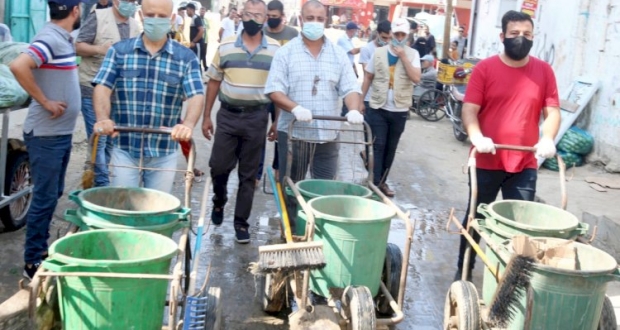 غزة: نفذت حركة فتح ساحة غزة في محافظة رفح لجنة اللاجئين وبالتعاون مع وكالة غوث وتشغيل اللاجئين مبادرة "تطوعنا حياة " لتنظيف و تعقيم شوارع مخيم الشابورة .