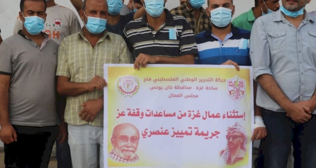 مجلس العمال في محافظة خان يونس ينظم وقفة احتجاجية ضد سياسة التمييز الجغرافي