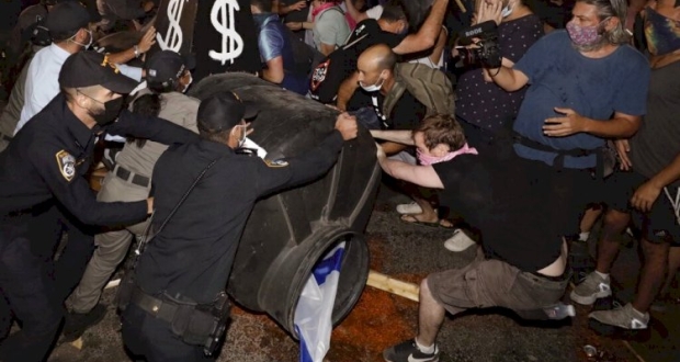 اعتدت عناصر من الشرطة الإسرائيلية على المتظاهرين في عدة مواقع للمطالبة برحيل رئيس الحكومة الإسرائيلي بنيامين نتنياهو، ما أدى إلى اندلاع اشتباكات عنيفة اعتقل على إثرها 6 أشخاص على الأقل.