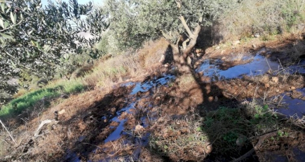 وأضاف أن غالبية هذه الاراضي مزروعة بأشجار الزيتون، الامر الذي يشكل خسارة كبيرة للمزارعين بعد التلوث الناتج عن هذه المياه.