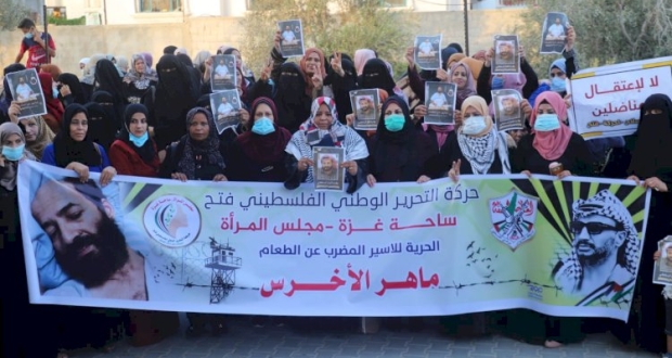 نظم مجلس المرأة ساحة غزة، اليوم السبت، وقفة تضامنية مع ابتسام القرا، في محافظة خانيونس والتي تخوض اضراباً مفتوحاً عن طعام منذ ستة عشر يوماً تضامناً مع الأسير ماهر الأخرس الذي يخوض حرب الأمعاء الخاوية منذ تسعين يوماً.