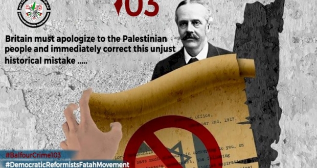 اليوم، يستعيد الفلسطينيون ذكرى صدور وعد بلفور في الثاني من نوفمبر عام 1917، والذي منحت بموجبه بريطانيا حقًا لليهود في تأسيس وطن قومي لهم على أرض فلسطين العربية بناءً على المقولة الماكرة: "أرض بلا شعب لشعب بلا أرض".