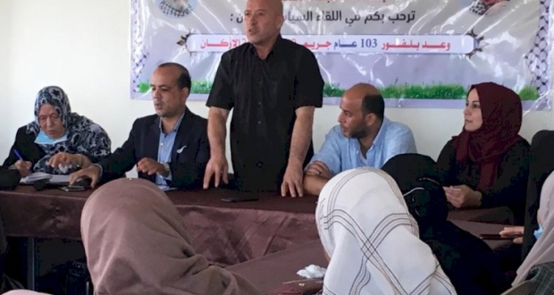حركة فتح بمحافظة خانيونس تنظم ندوة سياسية بعنوان :103 عام وعد بلفور جريمة مكتملة الاركان