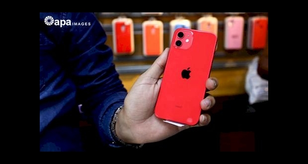 فلسطيني يعرض هواتف i Phon 12 الجديدة في متجره في مدينة غزة
