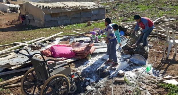 وفي أوائل نوفمبر/ تشرين الثاني، نزح ما لا يقل عن 73 من سكان خربة حمسة، من بينهم 41 طفلاً، ودُمر أكثر من 75 مبنى، بما في ذلك بيوت الخيام وحظائر الحيوانات والألواح الشمسية.وذكرت الإدارة المدنية الإسرائيلية -ذراع جيش الدفاع الإسرائيلي الذي يدير احتلال الضفة الغربية-، إن المباني الحية للمجتمع البدوي قد دمرت لأنها بنيت بشكل غير قانوني، في منطقة إطلاق نار عسكرية.