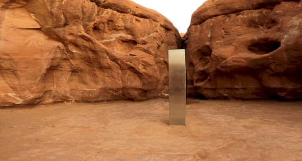 وأظهرت مقاطع فيديو انتشرت على وسائل الإعلام مسلة من المعدن اللامع، تم اكتشافها في صحراء يوتا.