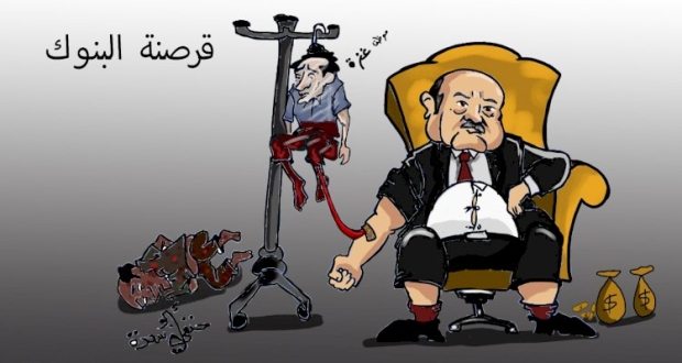كاريكاتير: قرصنة البنوك على رواتب موظفين قطاع غزة