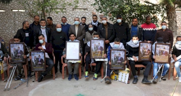 بالصور: اللجنة الاجتماعية بمحافظة رفح تكرم عدداً من الجرحى في ذكرى الانطلاقة