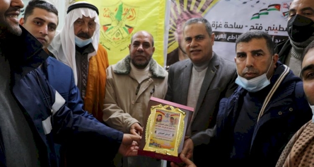 هذا وقدم قاطع الغرب درع تكريم للدكتور صلاح العويصي تقديراً لجهوده الحثيثة، وعمله الدؤوب لرفعة حركة فتح في ساحة غزة.