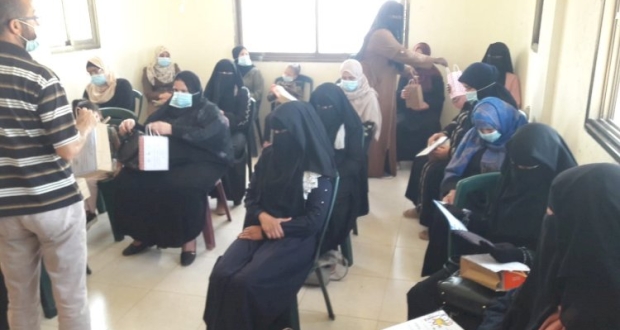وفي نهاية اللقاء تم توزيع بكج من المواد الصحية على السيدات .