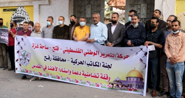 نظمت لجنة المكاتب الحركية محافظة رفح وقفة تضامنية دعماً واسناداً لأهلنا في القدس وذلك اليوم أمام مكتب المحافظة وبحضور عدد من قيادة ساحة غزة ومحافظة رفح.