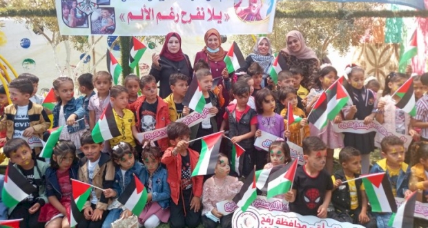 بالصور: لجنة رياض الأطفال بمجلس المرأة بمحافظة رفح تنفذ مبادرة بعنوان "يلا نفرح رغم الألم "