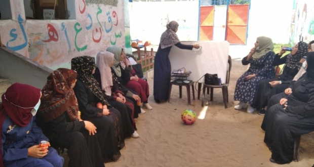 ورحبت الأخصائية حنان منفى بالمشاركات في جلسة دعم نفسي وترفيهي للأخوات ، مقدمة الدعم النفسي والاجتماعي اللازم لهن للتخفيف من التوتر وحدة الضغوطات النفسية التي تتعرض لها النساء كل يوم أثر الأوضاع النفسية والاجتماعية الحروب والمتكررة على قطاع غزة.