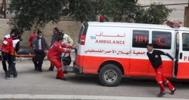 ونقل المصاب بواسطة الطواقم الطبية إلى أحد المشافي لتلقي العلاج.