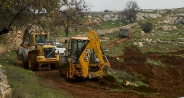 نابلس: مستوطنون يقومون بأعمال توسعة وتجريف في أراضي "بيت دجن"