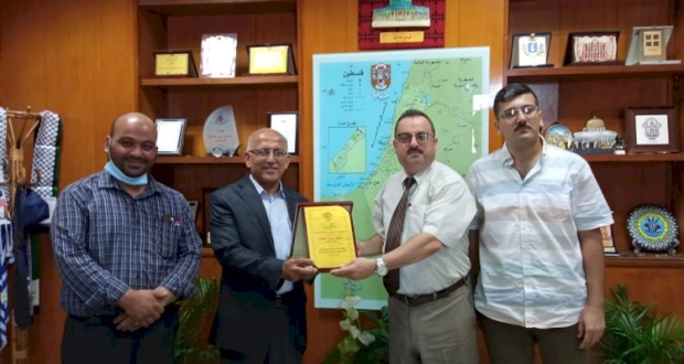 زار وفد من نقابة الصيادلة، يترأسه النقيب الدكتور إيهاب دبابش والدكتور عصام العطار رئيس اللجنة القانونية في النقابة والدكتورأحمد رامي مسعود رئيس بلدية غزة الدكتور يحيي السراج.