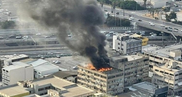 اندلاع حريق كبير في أحد المباني جنوب تل أبيب
