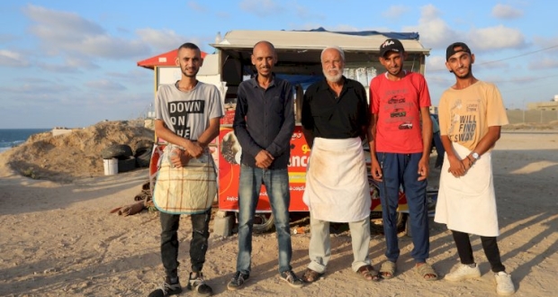 وعلى شاطئ بحر دير البلح، افتتح أبو شادي طومان (65عاماً)، بسطة للوجبات السريعة، والمشروبات الساخنة، أطلقوا عليها اسم "تومانكو"، لتكن مصدر رزق لهم، والتغلب على البطالة التي تضرب بقوة أبناءه الخريجين الأربعة.