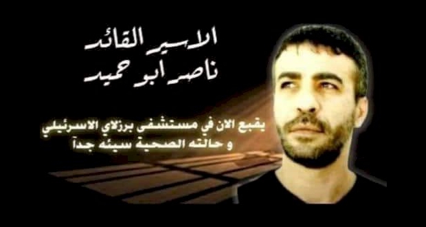 وقالت اللجنة في تصريح لها، أن الأسير ناصر أبو حميد" ٤٩ "عاماً من مخيم الأمعري يقبع الآن في مستشفى "برزلاى" بحاله صحية صعبة جداً، وبعد أن اكتشف الأطباء ورم على رئته وأخذ خزعه منه لتحد حجم ومرحله المرض بعد ان كان يعاني منذ فتره من آلام حاده بالتنفس والصدر.
