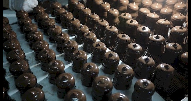 بالصور.. عمال داخل مصنع العريس بدير البلح يتجمعون على خط إنتاج حلوى "الشتوي"